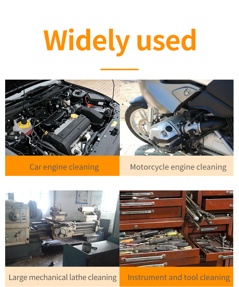 Scope of application | Cars, motorcycles, tools, large machinery engine cleaning |