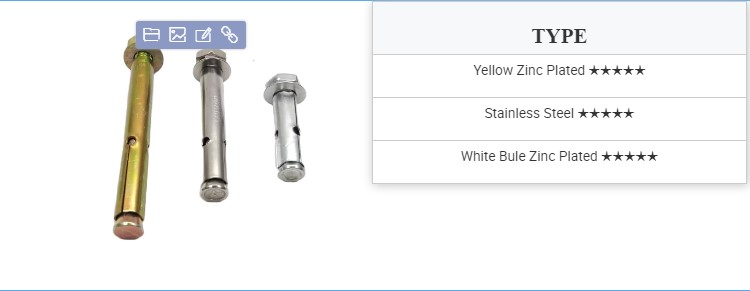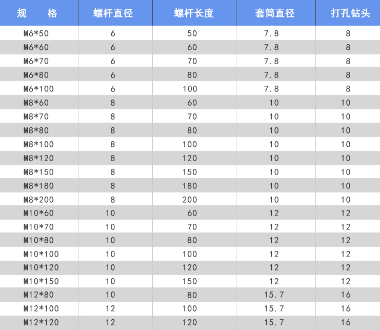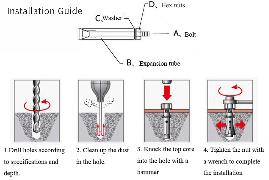 application: | Generally used for fastening concrete fences, awnings, air conditioners, etc. on concrete, bricks and other materials. | ||||||