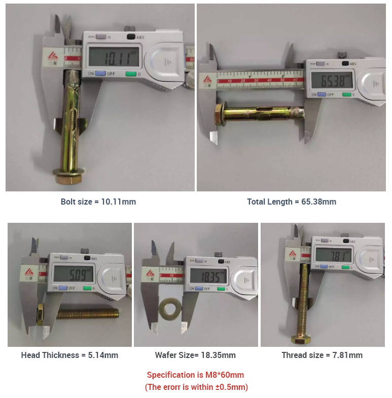 Specification | Thread size | length | Bolt size | Drill bit size |