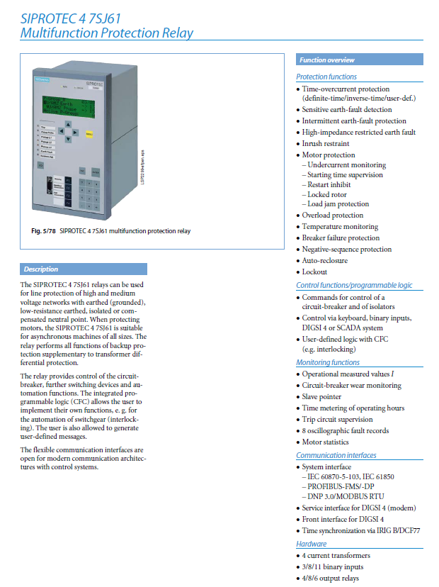 7SJ61x multi-function protection