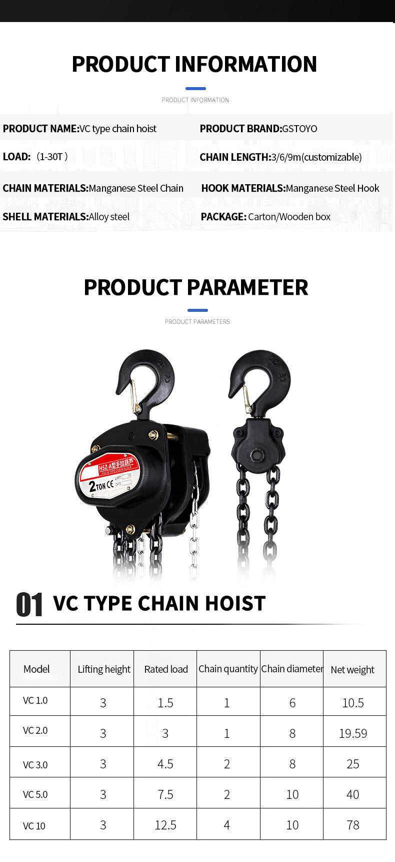 | Test load: | 1.5 tons | Load chain diameter: | 6mm |