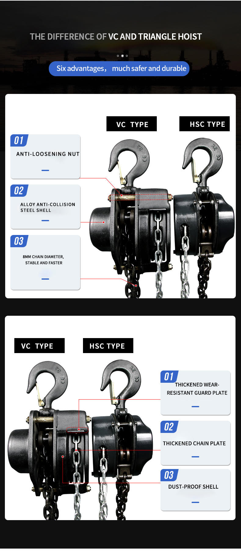 | Supply capacity: | 3,000 hand chain hoists per month | Safety factors: | 1.5:1 |