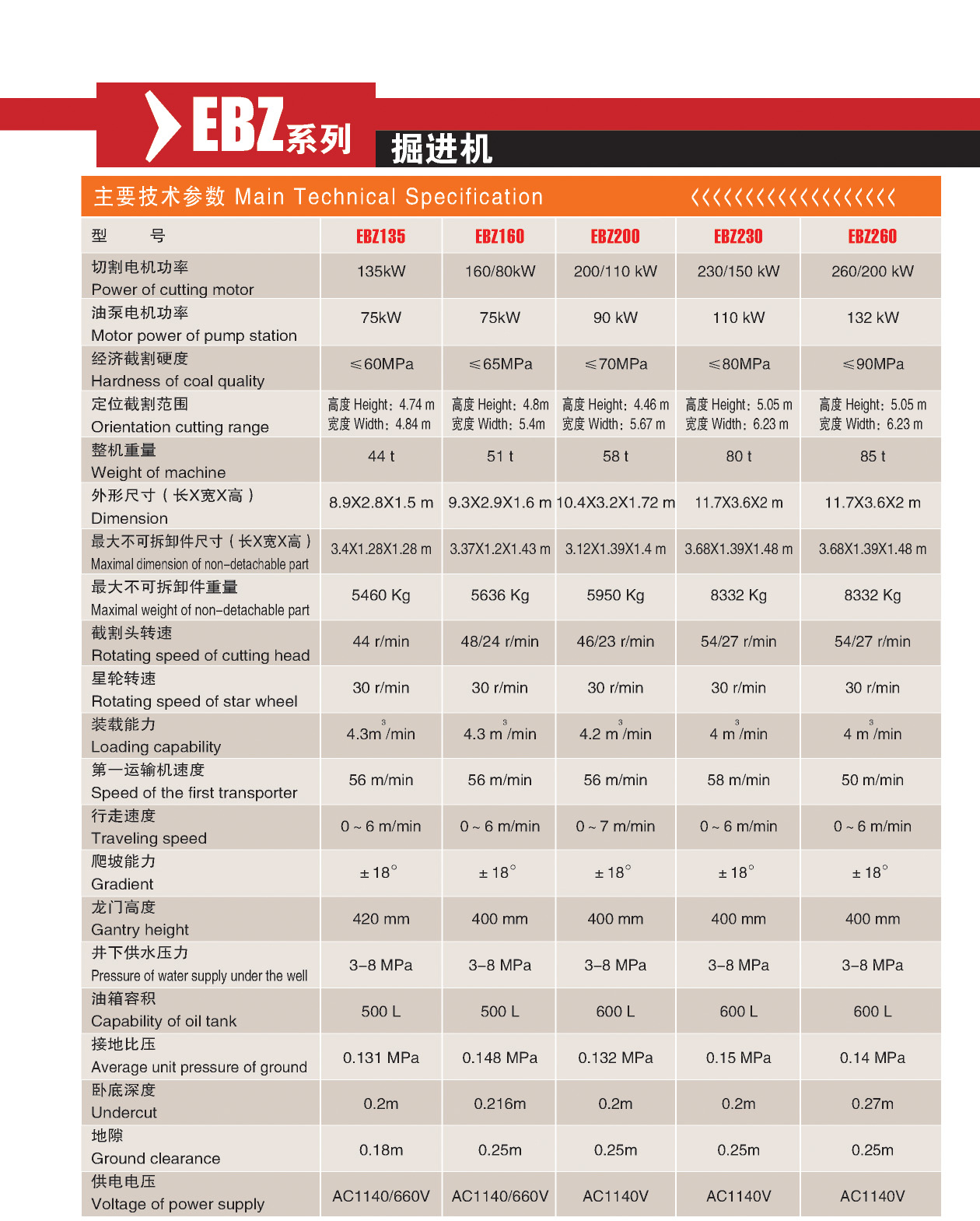 | Cutting motor power | 135kW |