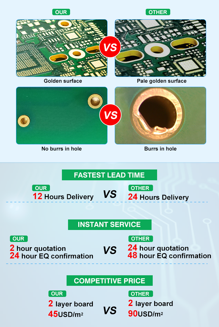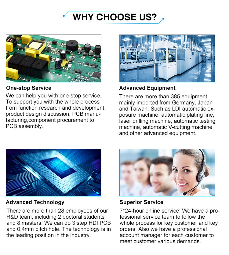 Our company provides customers with PCB industry solutions in the fields of templates and small batches. With high quality and on-time delivery of products, it has won widespread praise from the market. We will continue to focus on customer satisfaction, along with "high quality" and "fast delivery", to build the company into an electronic circuit service provider worthy of customer trust. Our factory mainly produces ordinary double-sided boards, multi-layer boards, HDI boards, metal substrates, semiconductor boards, rigid-flex boards and flexible boards.