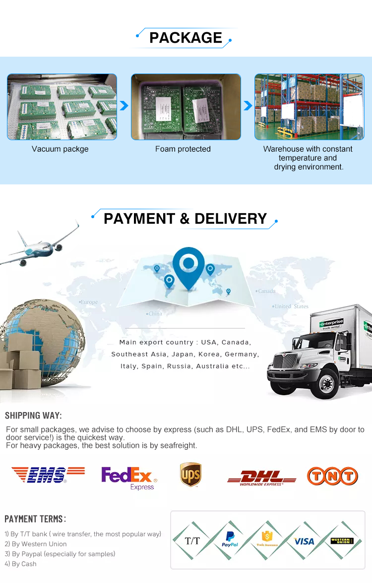 | Packaging details: | PCB PCBA manufacturing, flexible PCB electronic circuit board PCB assembly PCB: carton vacuum packaging PCBA: carton anti-static packaging | payment terms: | L/C, Western Union, D/P, D/A, T/T, MoneyGram, Alipay |