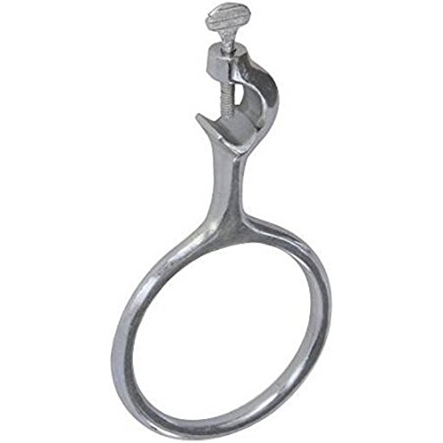 This sturdy cast iron support ring is unbreakable and acid-resistant, making it a must-have for any laboratory. Thumbscrews in the clamp lock the ring tightly to the bracket. Great for use in chemistry classes!