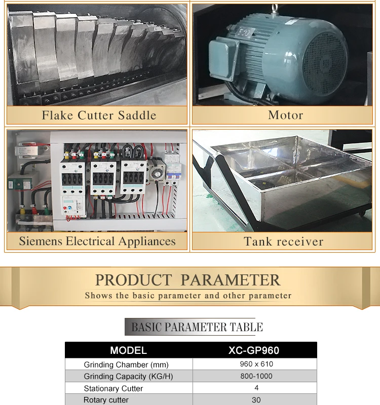 XC-GP series granulators are adopted with sealed bearings which can handle long hour operation ,the unique design of the cutter ensures the quality of granule sizes
