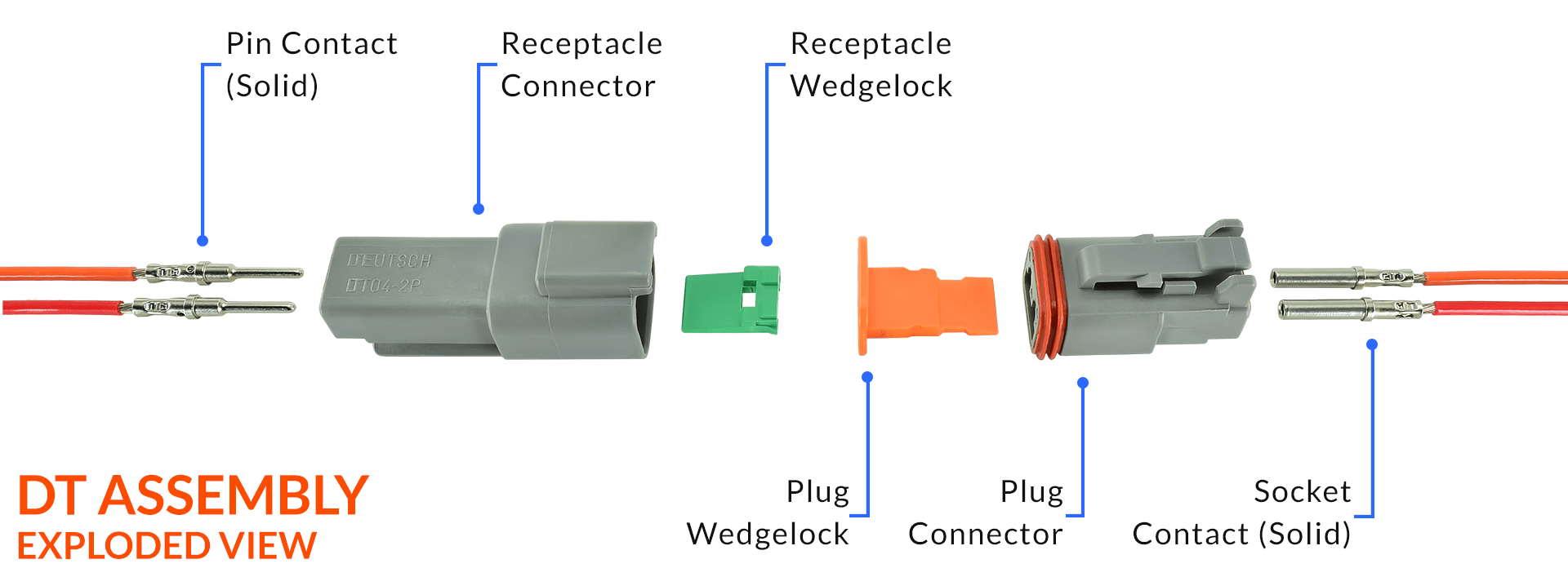 product name | Deutsch 2 Pin Connector DT Series Waterproof 14-20 AWG DT04-2P DT04-2S |