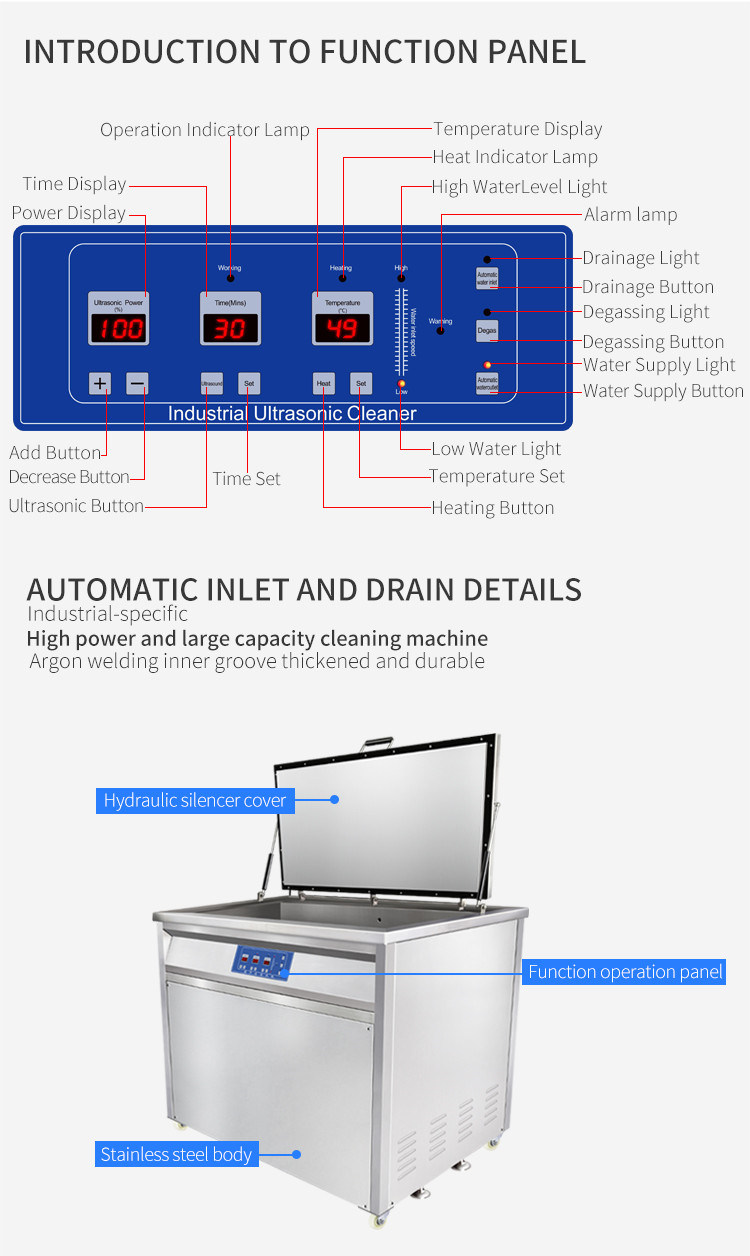 | Type of machine: | Industrial ultrasonic cleaning machine | Material: | Stainless steel 304 SUS316L, SUS304/316L |