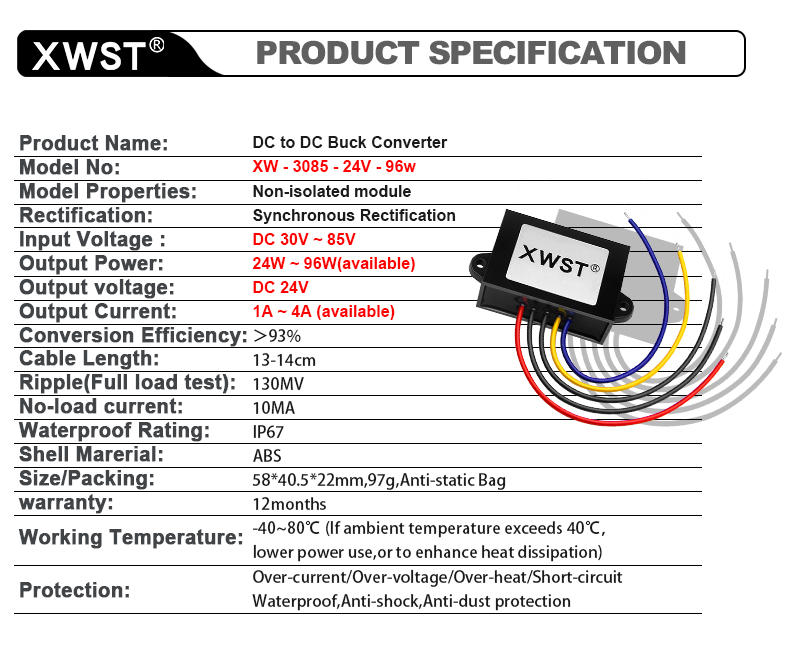 | type: | DC regulated switching power supply DC 30-85v to 24v | Output Power: | 24-96W |