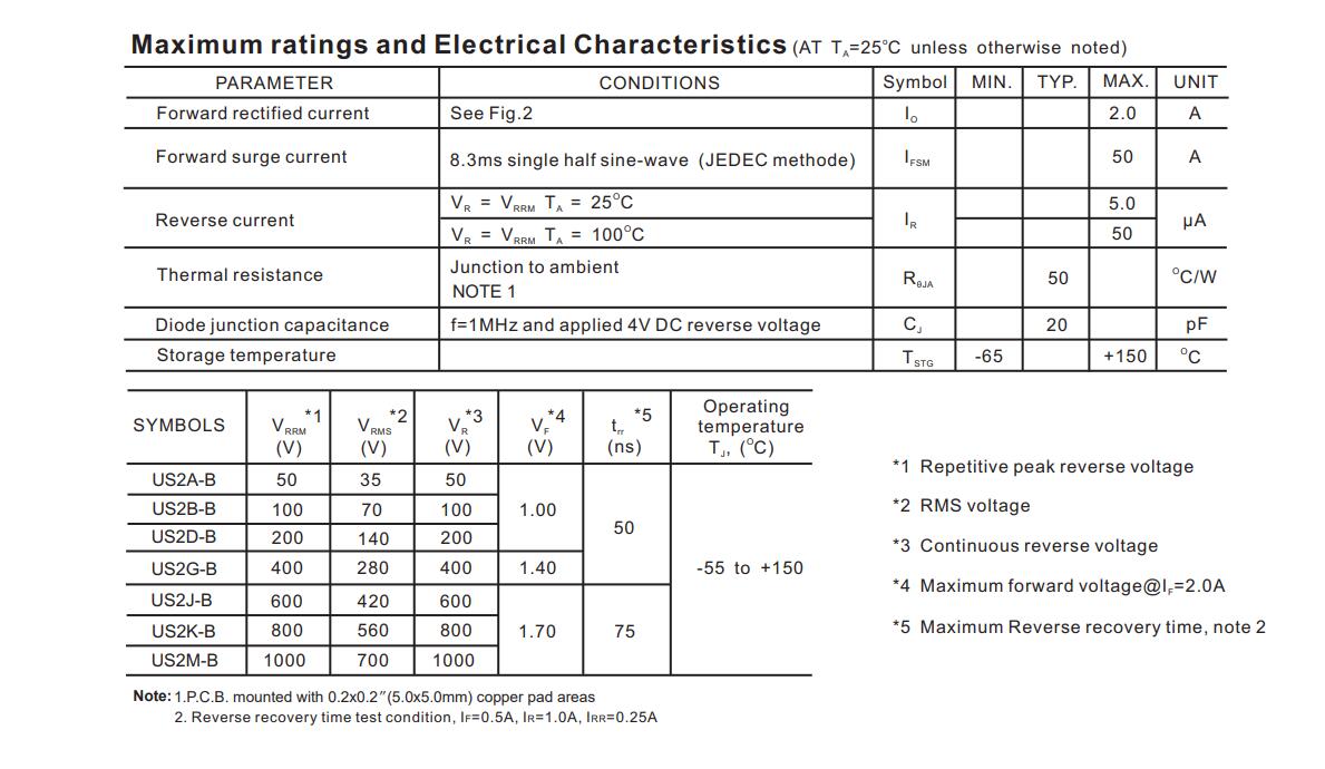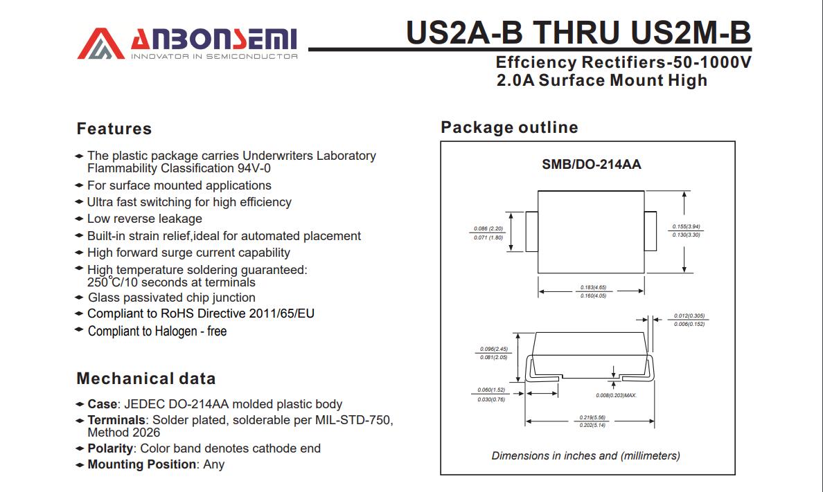 Model | | US2M-B ultra-fast and efficient rectifier diode | | |