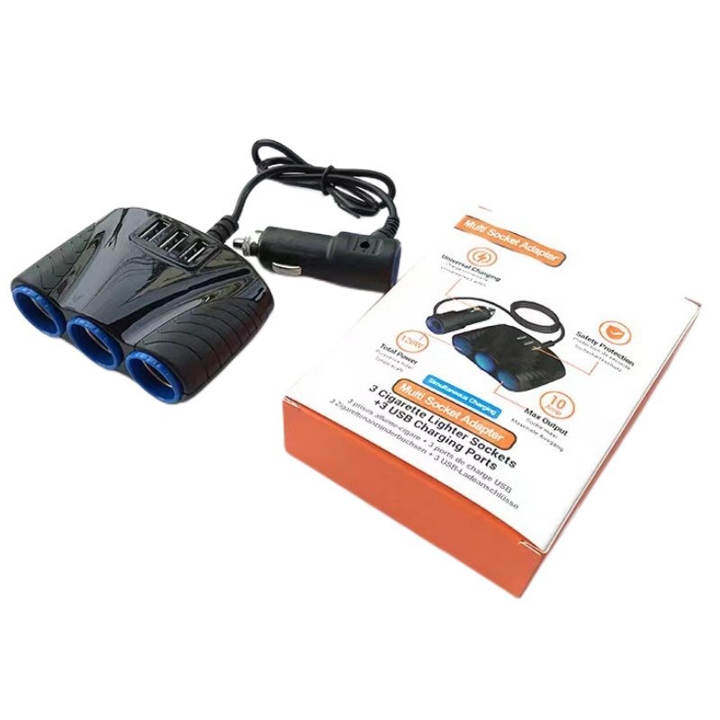 1x 3 sockets + 3 USB cigarette lighter splitter