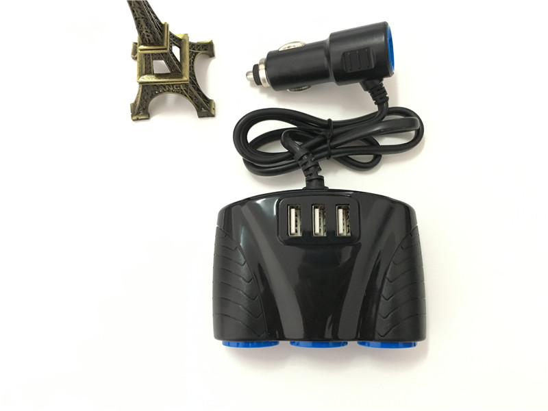 Car 3 Outlet Cigarette Lighter DC 12V/24V Car Charger Splitter Multiplier + 3 USB Ports
