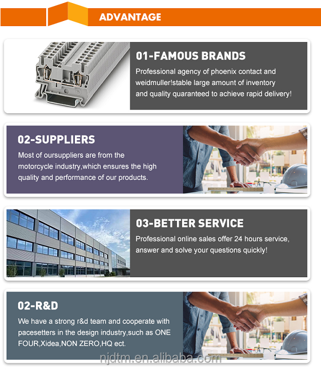 Q1: Are you a trading company or a manufacturer?A1: We are a professional manufacturer with our own independent export rights. It is also a senior distributor of Phoenix Contact and Weidmüller!Q2: How about the after-sales service?A1: Our professional online sales will solve all your problems within 24 hours. Of course, if you have any questions after receiving the goods, we will also provide you with suggestions!Q3: How long is your delivery time?A3: We have many products in stock. We can dispatch stocked products within 3 working days. If there is no stock, or insufficient stock, we will check the delivery time with you. Don’t worry about anything, we’ll do it for you!Q4: What is your shipping method?A4: Usually by express--UPS, DHL, Fedex...or the way you want (sea or air)! Don't worry about everything, we will find the cheapest way for you! If you have a Chinese freight forwarder, we can do that for you too!Q5: What payment methods do you accept? Can I pay in RMB?A5: We accept T/T, Alipay and Paypal. Please make sure we can receive the invoice for the same amount. And you can pay in RMB, no problem.