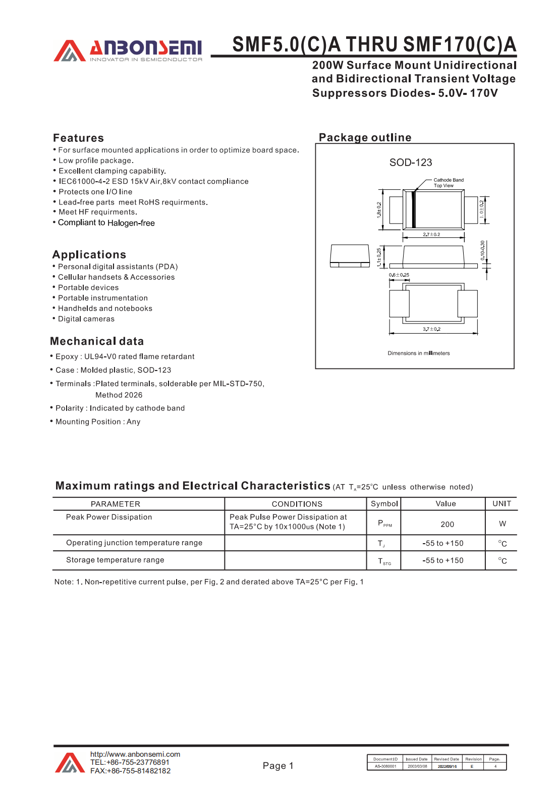 | Packing/box: | SOD-123 | Diode type: | TVS diode |