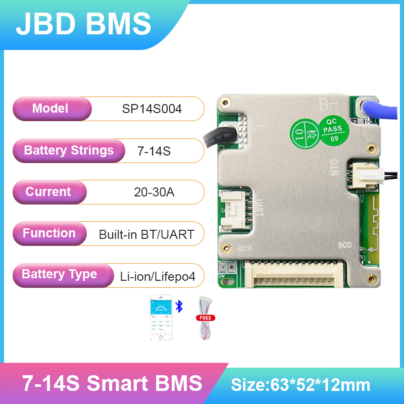 Jiabaida built-in BT BMS 7s 8s 10s 12s 13s 14s 24V 36V 48V 20A 30A automatically identifies BMS with UART NTC