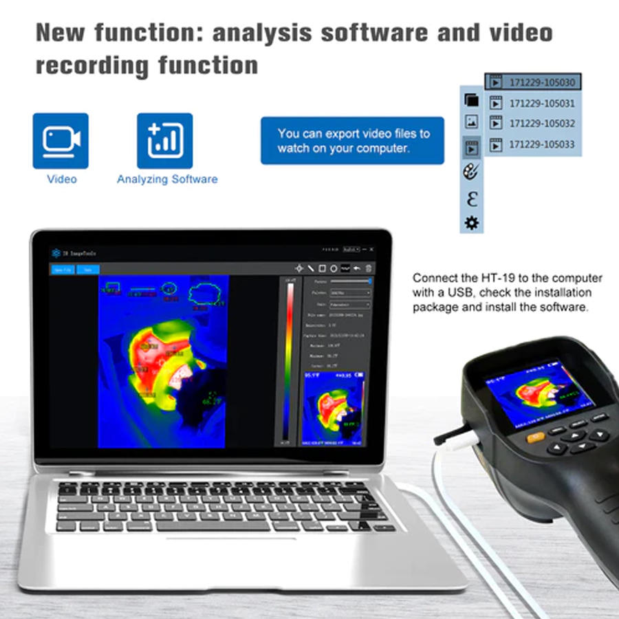 ➤Most thermal imaging cameras cost thousands of dollars, making it nearly impossible for the average homeowner to own one. In recent years, more affordable cameras have been developed, Hti entered this market and is now one of the leading players in the industry. ➤easier to readImproved 320 x 240 resolution brings more detail and accuracy. This is a professional quality IR thermal imaging camera for use in home inspections, firefighting, agriculture, electronics manufacturing, transportation research, archeology, and any other business, hobby, or science that requires temperature readings accurate to 2.5°F. ➤5 color palettesMake readings more useful and easier to visualize. Choose from rainbow, iron red, cool, black and white or black and white. The 3.2-inch color display makes working faster and more accurate. Get the job done in less time thanks to excellent integration of surface temperature and real-time thermal imaging ➤Comes with 3 GB built-in memory cardIncluded for convenient storage. Display on laptop, TV or other device using Micro USB connection. Easy to use, no learning curve required. Simple push-button operation lets you get started right away for better measurements and more accurate information and visualizations. ➤Light weight with rechargeable batteryIt can work continuously for 2 to 3 hours on a single charge. You can purchase replacement batteries. Open the battery cover to replace the battery. It's easy to hold thanks to its ergonomic grip and lightweight 389 grams. Compare that to a pound! Comes with a nice travel bag for protection during transportation and storage.Specification:Brand: HTI Model: HT-19 Display 3.2" full viewing angle TFT Display infrared image resolution: 320*240 Visible image resolution: 300,000 pixels Field of view/minimum focal length: 56°*42°/0.15m Thermal Degree: 0.07℃ Temperature measurement range: -20°C~300°C (-4°F~572°F) Measurement accuracy: ±2% digital/±2°C Emissivity: 0.01 to 1.0 adjustable thermal image frame rate : 9Hz Wavelength Coverage: 8-14um Focus Mode: Fixed Palette: Rainbow, Iron Oxide Red, Cool Color, Black and White, Black and White View Options: 25% step thermal and visible light images Integrated Storage Media: Built-in 3G (stores images 20,000 or more) File format: JPG USB: Micro USD2.0 Power supply: Built-in rechargeable 18650 battery Automatic shutdown time: selectable (5 minutes/20 minutes/no automatic shutdown) Product size: 90*105 *223mm Product weight: 389g Working temperature: 0℃ to 45℃ Storage temperature: -20℃ to 60℃ Relative humidity: <85%RHHighlights:- 3.2-inch full-color screen, which can display infrared-generated images in detail - 320x240 resolution and 300,000-pixel visible image resolution, high image clarity - 20~300°/-4°~572° temperature measurement range, 2.5° accuracy Better operation - 5 color palettes to choose from: rainbow, iron red, cool, black and white and black and white - Auto settings: 5 minutes/20 minutes/no automatic shutdown - Built-in 4GB SD card for storage, pictures can also be transferred View on TV, computer and other devices - Widely used in medical, fire protection, archaeology, transportation, agriculture, electronic manufacturing and other fields - Separate specific function buttons allow you to easily open or close, delete or view pictures - Size is 90× 105×223mm, weight 289g, mini portable, comes with pouch for easier carrying - ergonomic handle, comfortable to use and hold