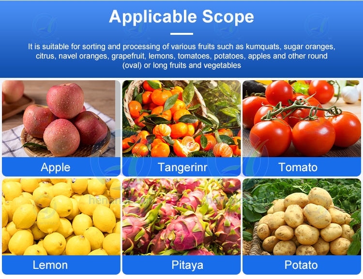Applicable | Potatoes, apples, oranges, longans, onions, pears, avocados, betel nuts, cherries and other round fruits and vegetables |