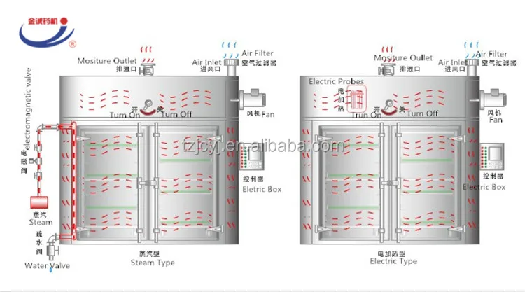 1.Most hot air is circled inside the fruit vegetable herb tea leaves drying machine oven, high heat efficiency, save energy.