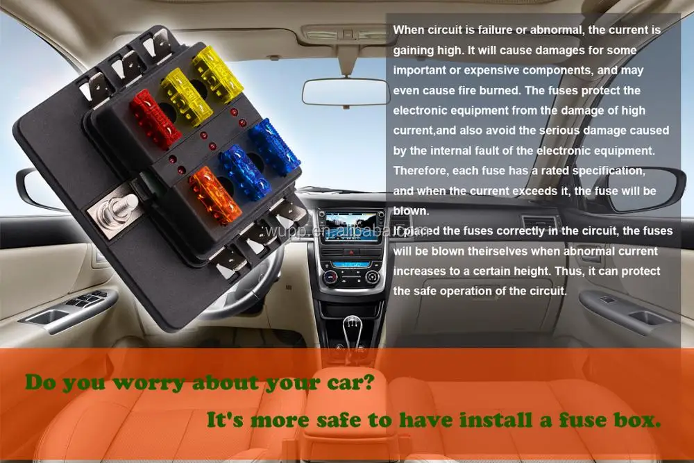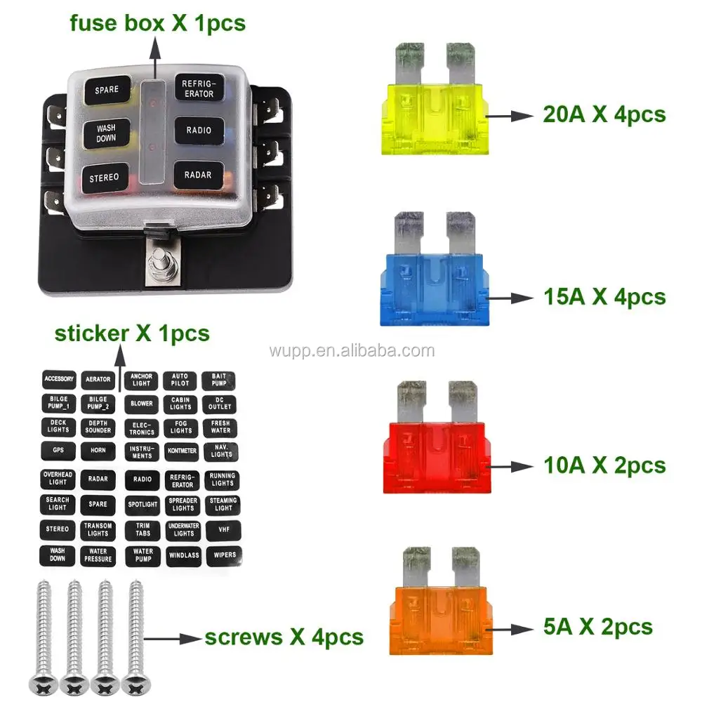 4. Kits include 1 common bus supplies power for 6 way fuses,10 fuses ,fuse puller and 10pcs terminal connectors,2 ribbons for mounting the fuse holder more firm;