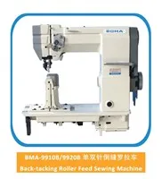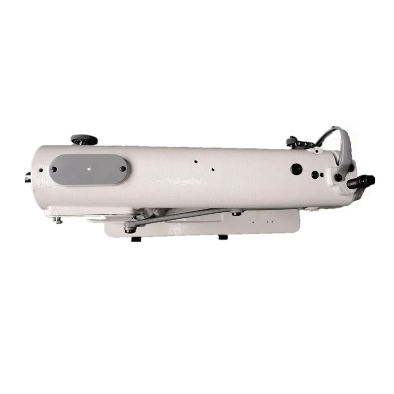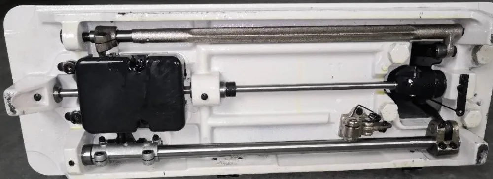 1) This post-bed sewing machine is equipped with vertical hook, spring return reverse lever mechanism and slide type thread take up.