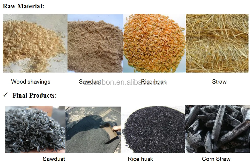 | Raw material: | bamboo, coconut shell, wood waste,etc; | Fuel: | Gas; |