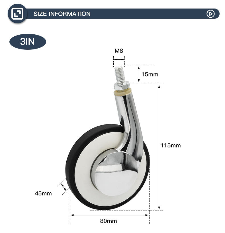 | usage: | Trolleys, shopping carts, display racks, medical equipment, sports equipment, etc. | width: | 45 mm, 3 inches |
