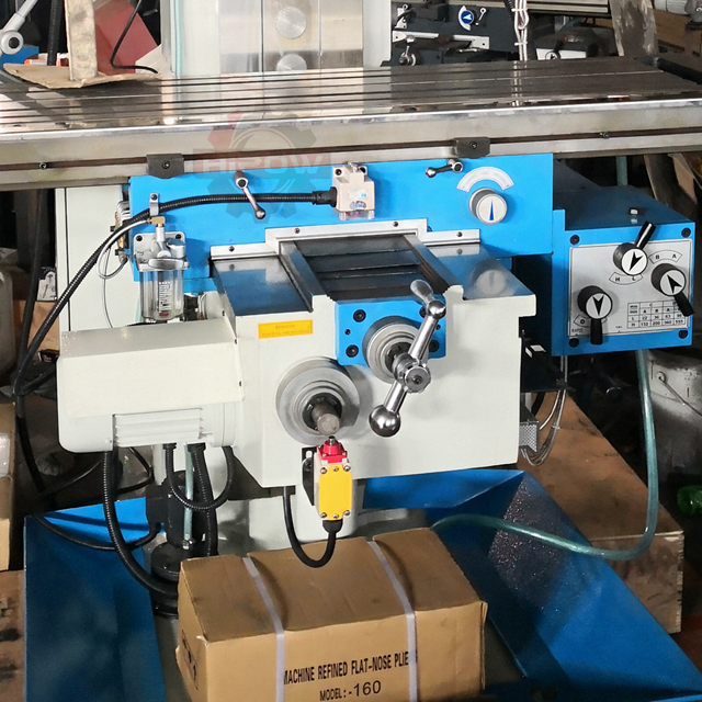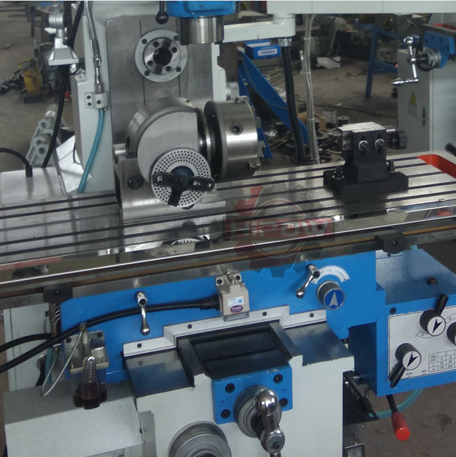Key Features 1. The milling head has automatic drilling function and can rotate ±45 2. Universal milling machine has milling and tapping functions 3. The machine tool table adopts gear transmission power feed, 4.Full-featured and flexible 5. Universal milling machine can be equipped with plugs and rotating worktable 6. The working table and guide rails are made of supersonic high-frequency quenching 7. The workbench is made of HT200-250 high-strength cast iron 8. Dovetail groove workbench guide rails can withstand greater overturning moment 9.Vertical milling spindle automatic feed 10. Gear drive milling head