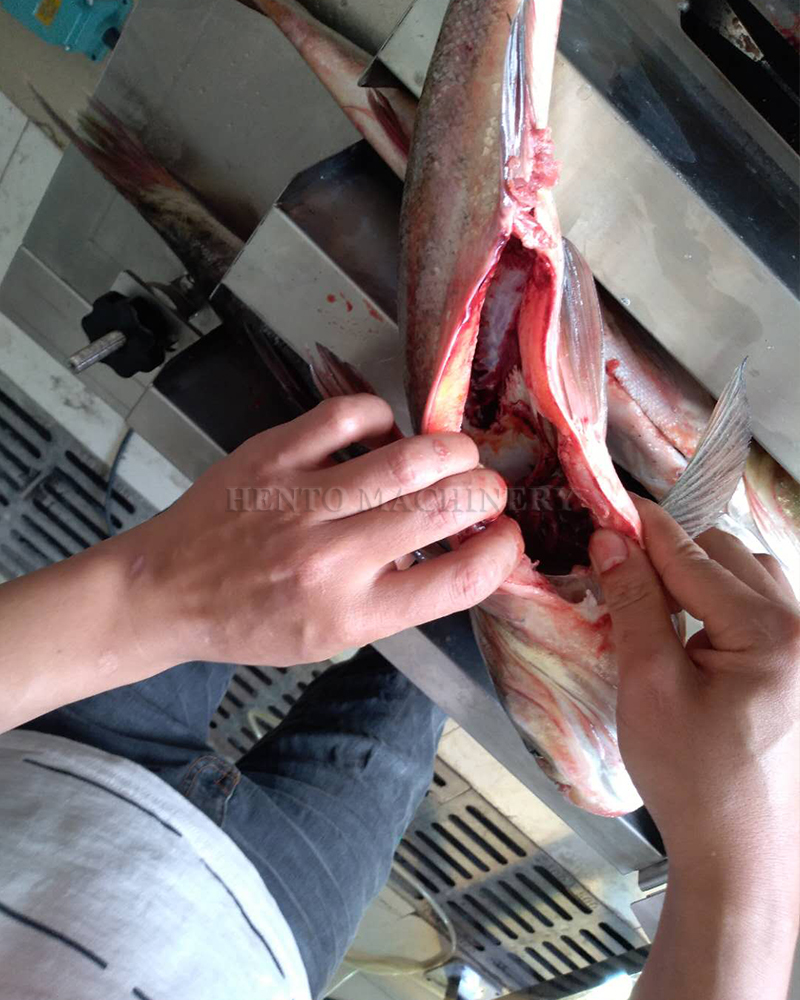 This machine is a fish evisceration machine, made of stainless steel, with the advantages of fast speed, high quality, labor saving, convenience and efficiency, high safety and easy operation.