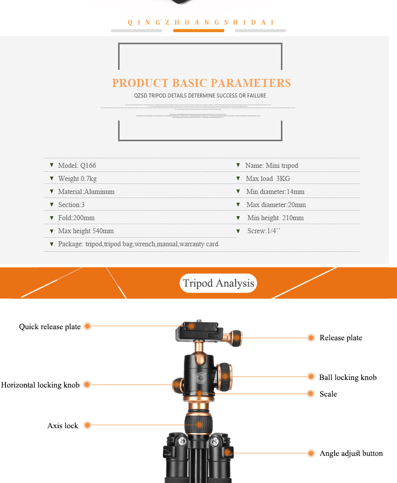 | Bubble Level: | No | product name: | Q166 Tripod |