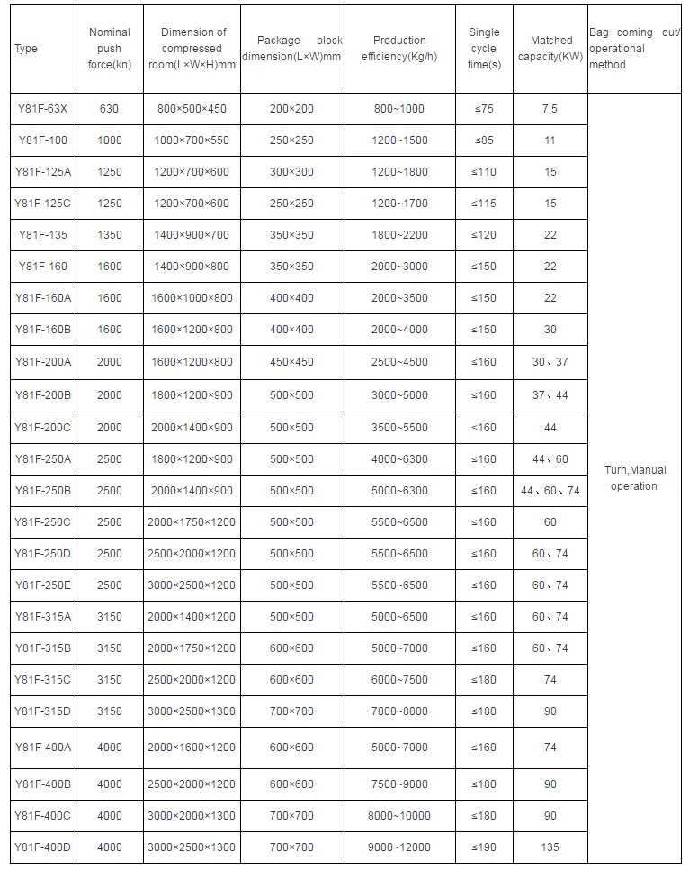 | Dimension of compressed room: | 1800x1200x900mm; | Nominal push force: | 2500KN; |