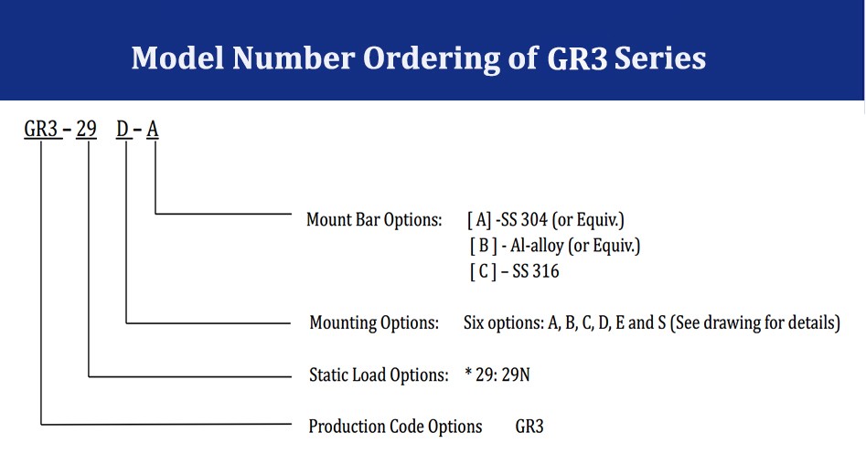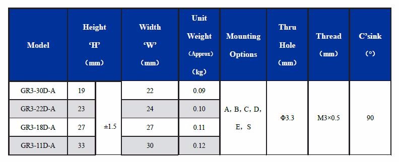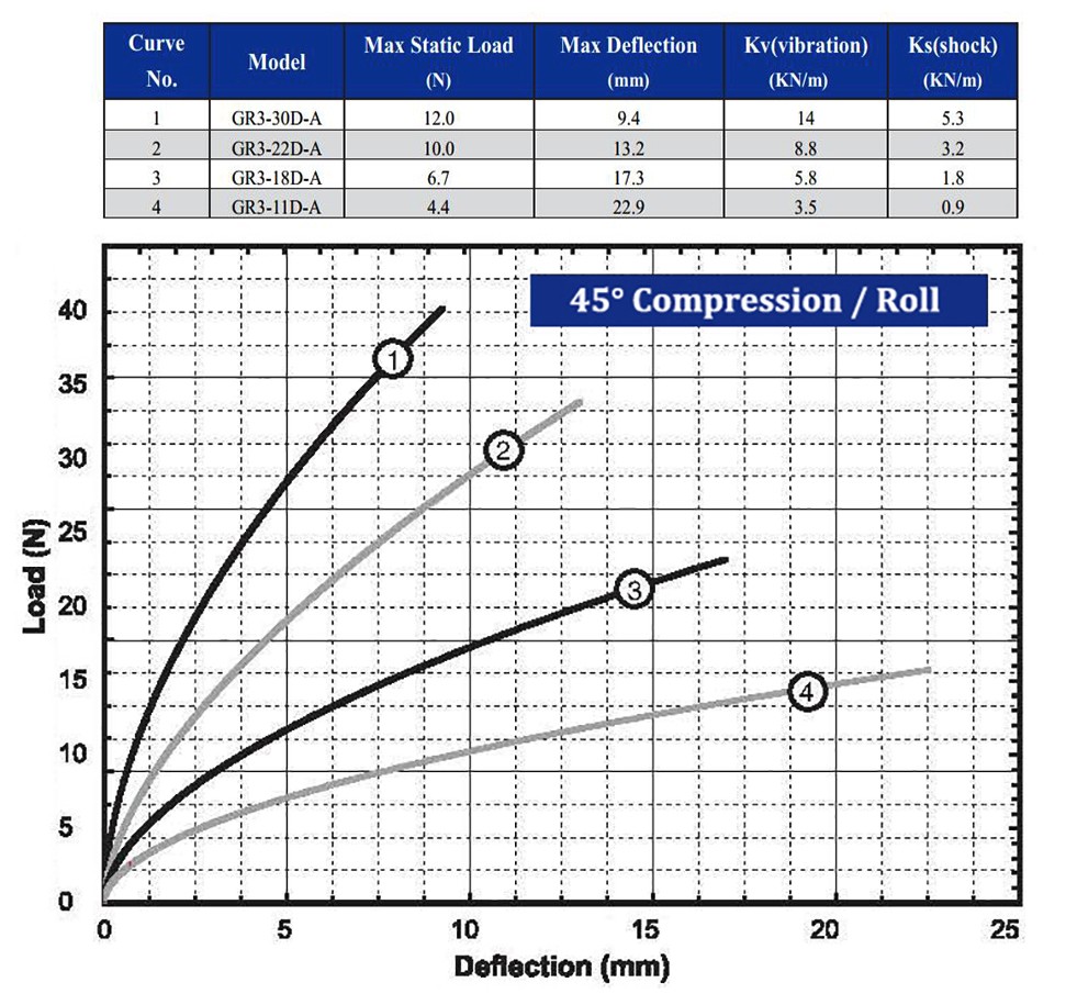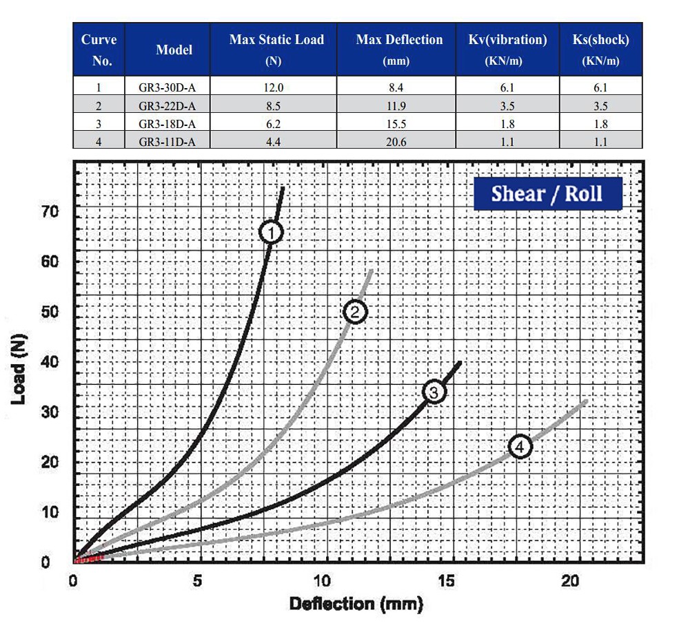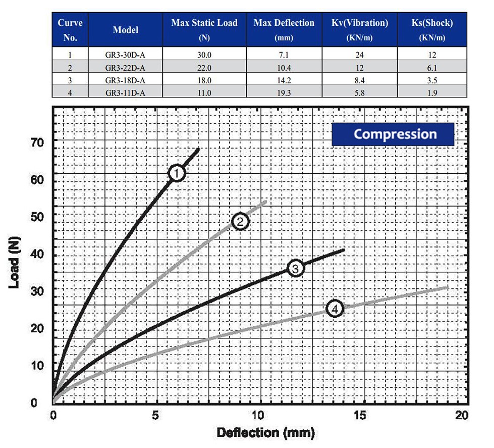 The GR3 series has 4 models, which are made of 2.4mm diameter steel wire rope wrapped around two mounting rods. The maximum static load isGR3 Series Camera Vibration IsolatorsFrom 11N (1.12 kg) to 30N (3.06 kg).