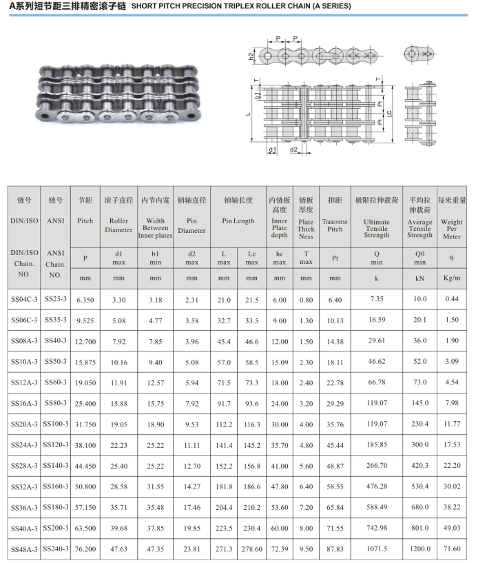 Product Name | 10A-3 50-3 15.875mm pitch high precision carbon steel three-row roller chain |