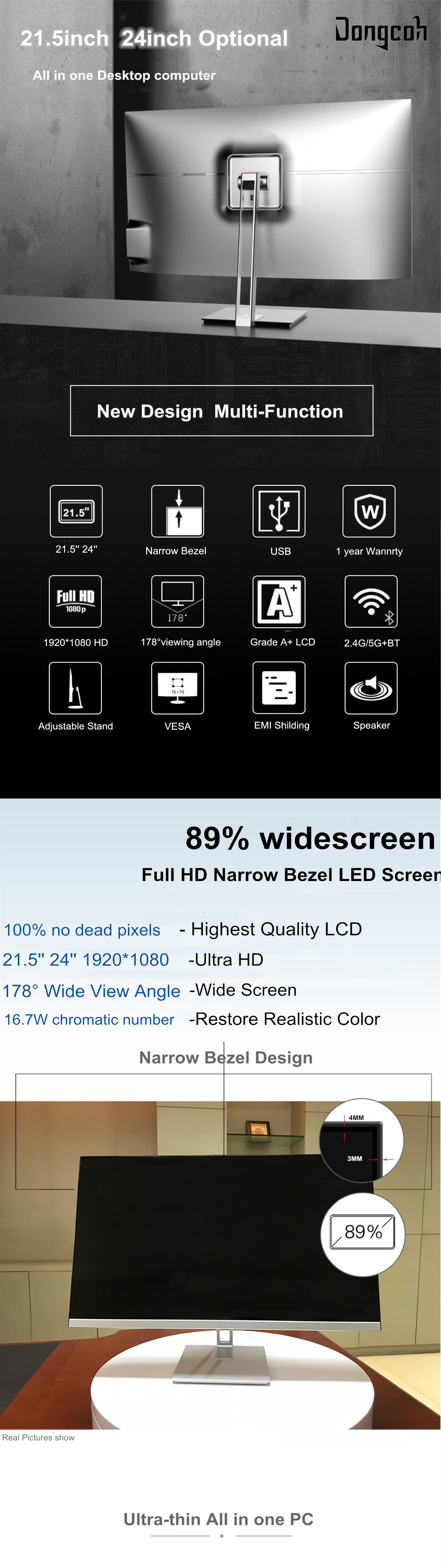 24 inch 27 inch Core I3 I5 I7 AIO 1920*1080 borderless DDR4 8GB all-in-one laptop desktop all-in-one touch screen