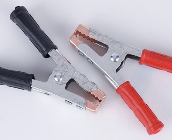 | One clip has red insulating plastic and the other clip has black insulating plastic Uses: Great for various electrical projects, voltage tester, works on all car and truck batteries. |