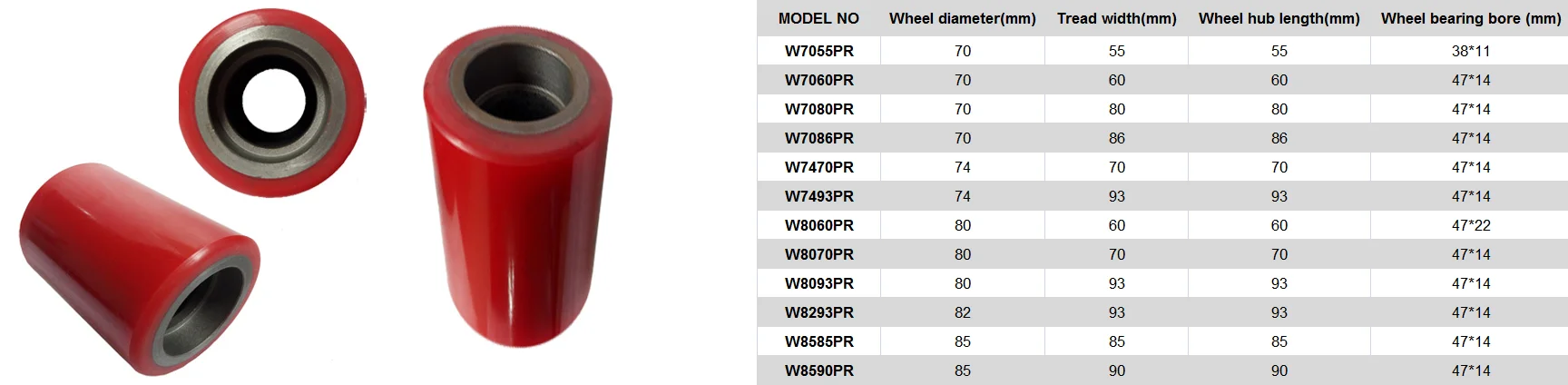 The wheels can be used for all kinds of hand pallet trucks