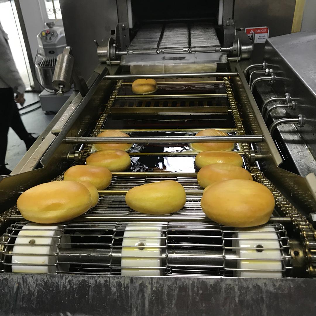 The fermented donuts will be sent to frying and automatically flipped to ensure the taste and shape of each donut (supports adjustment of frying time and temperature)