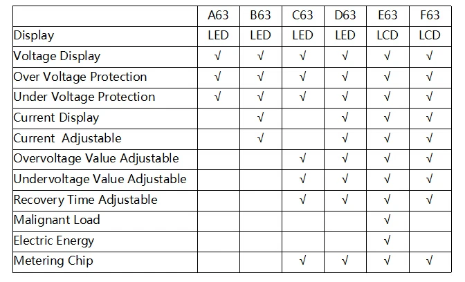 Intelligent multi-function protector is a over-/under-voltage protection, In case over-voltage, or under-voltage the protector can instantaneously cut off the power and protect the electrical equipment fromburning-out. When all lines return to normal state, the protector can automatically restore power. The parameters ofthis protector, such as over-/under-voltage value, actuation time and recovery time, etc., can be setting as needed. It still possesses the function of fault memory and inquiry as well as factory data reset.