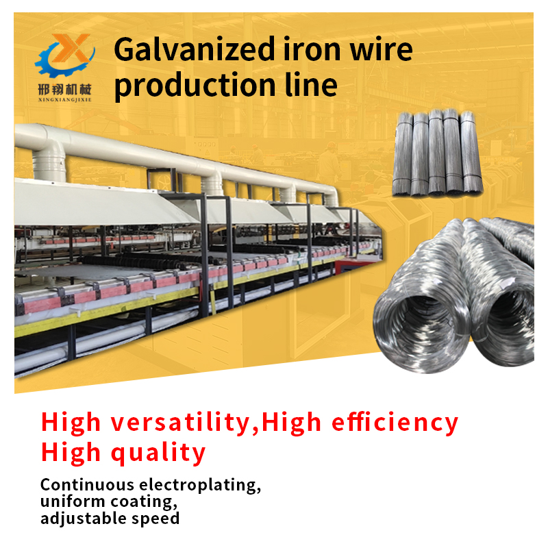 The wire electro-galvanizing production line is used for galvanizing black iron wire and black annealed wire. The equipment and galvanizing formula adopt the most advanced technology, and are sealed and pickled without sour smell.
