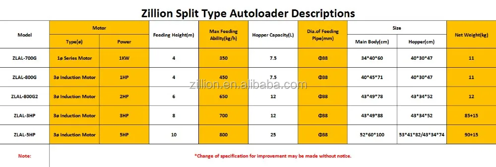 Zillion series vacuum auto-loader device adopt stainless steel material hopper, high performance vacuum motor, motor protective device and material shortage alarm. They all have characters of compact size, light weight, strong vacuum suction, easy installation, simple operation and good durability.