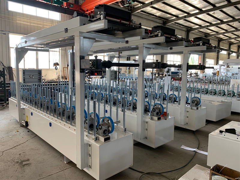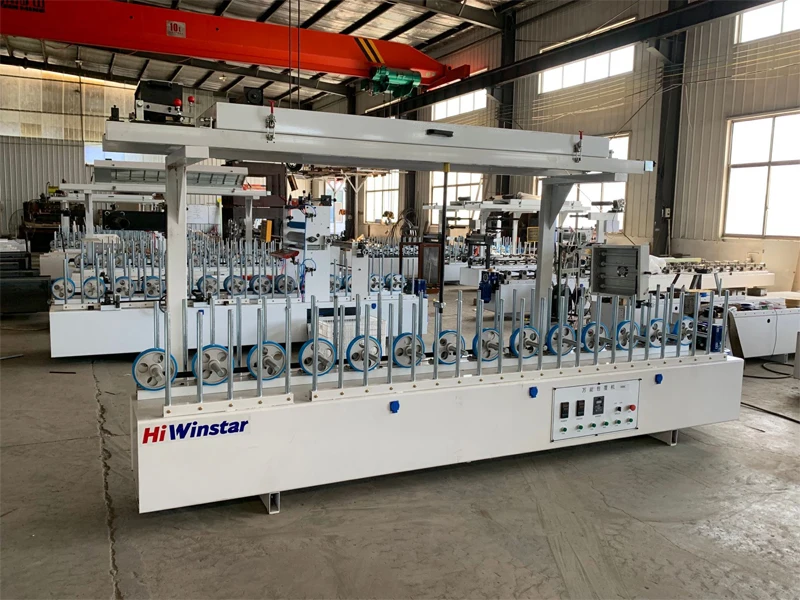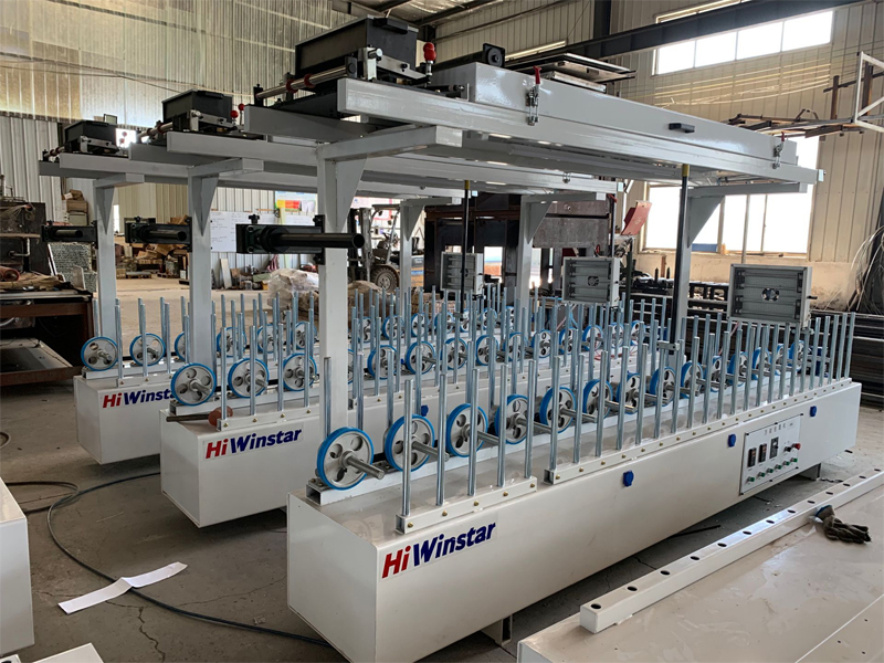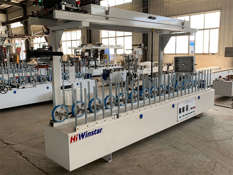 The profile winding machine uses PUR hot-melt polyurethane reaction glue and an automatic scraper system. The machine has the functions of automatic dust removal, glue application, profile heating, automatic glue scraping, and protective film application. The machine adopts frequency conversion speed regulation and worm gear transmission.