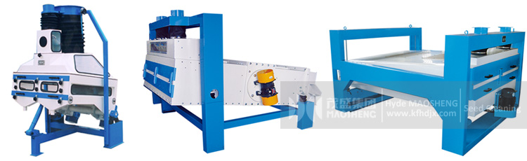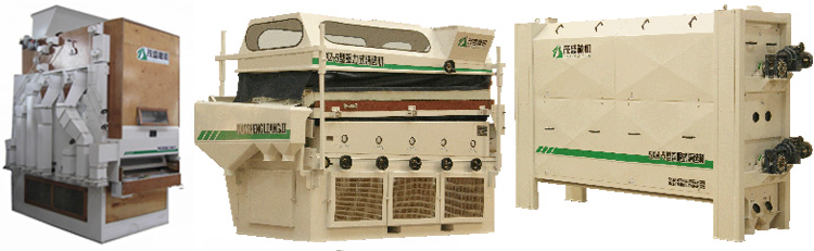 Pre-cleaning machine, fine cleaning machine, rotary cleaning machine, seed grader, seed gravity separator, toothed drum, wheat field awn remover, stone removal machine, vibration cleaning machine, rotary cleaning machine, suction Air blower, cyclone dust collector, seed treatment machine, seed dryer, elevator and conveyor, automatic packaging scale.