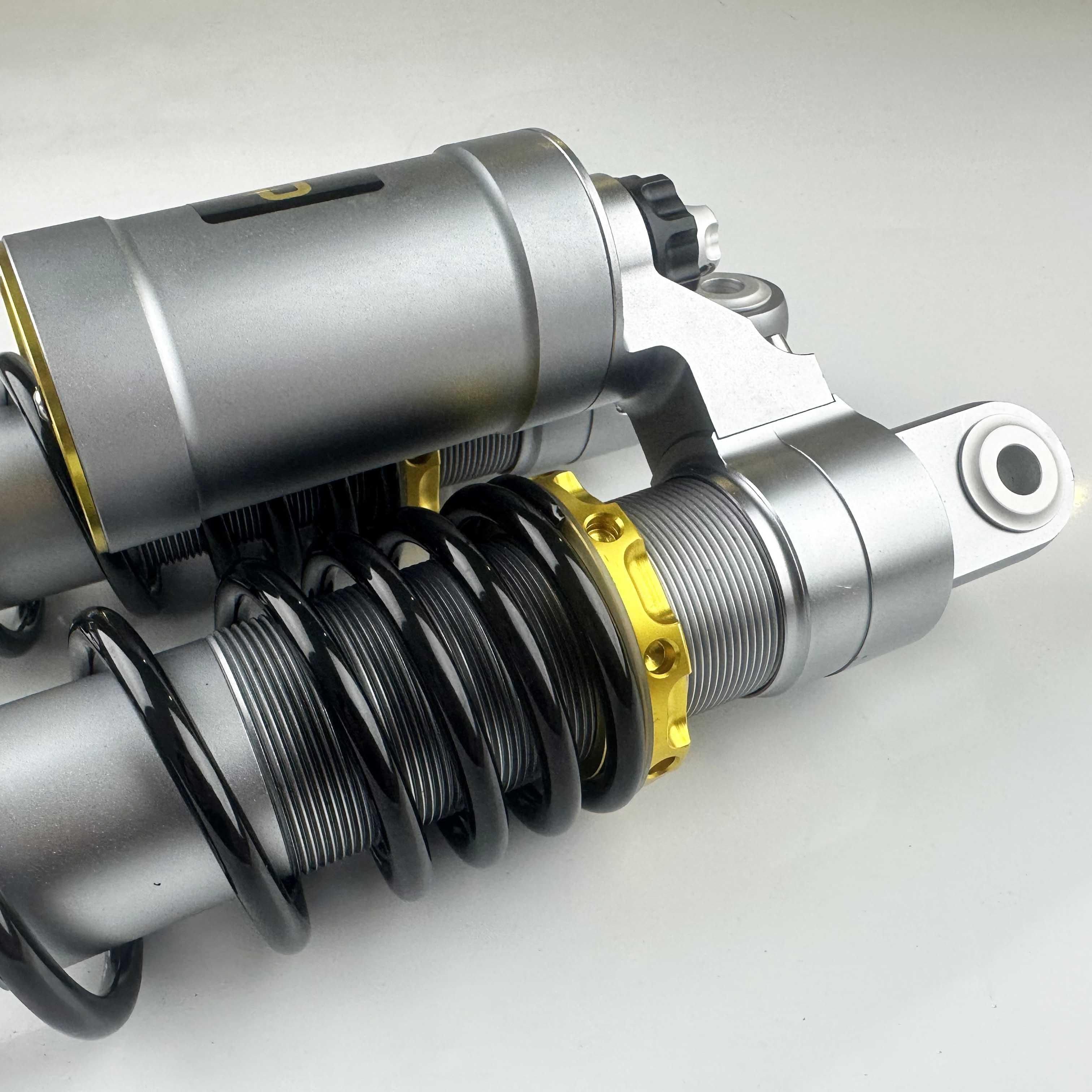 Rear shock absorber: It also uses the perfect combination of spring and damping mechanism to effectively absorb ground vibration and maintain vehicle stability. The working cylinder and air bag cylinder are all machined by lathes, with accurate dimensions. The hard oxidation surface treatment is combined with the hard chromium plating piston rod. The surface roughness is as low as 0.15, and the hardness and wear resistance are significantly improved. In addition, the application of quenching, high-temperature tempering and other processes ensures the excellent performance and long life of the shock absorber. Likewise, each shock is rigorously tested to ensure quality and secure your ride