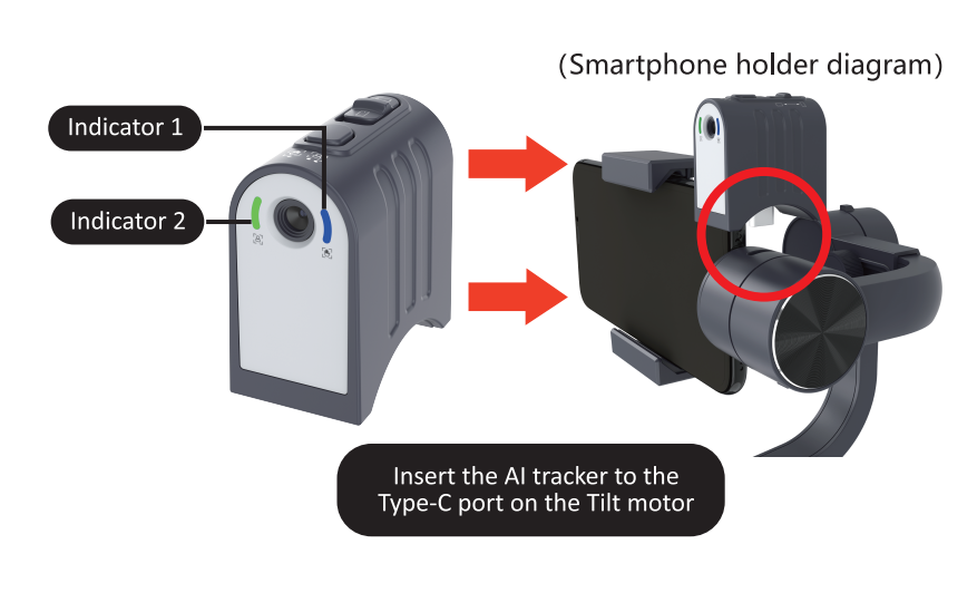 No APP required.Plug the Al tracker into the Type-C port on the tilt motor.