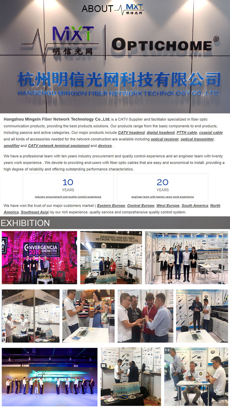 Hangzhou Mingxin Optical Fiber Network Technology Co., Ltd. Tel: +86-571-63870190 Fax: +86-571-63870190 Mobile: +86-13782867331 Website: www.chnmxt.com Address: Lin'an Economic Development Zone, Lin'an City, Hangzhou City, China (311300 )
