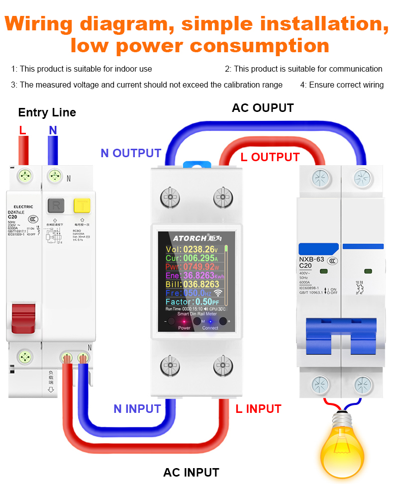 (In view of this, please strictly follow the wiring diagram of this meter to connect the output air switch, and wait for the meter to start before turning on the air switch of your device.)