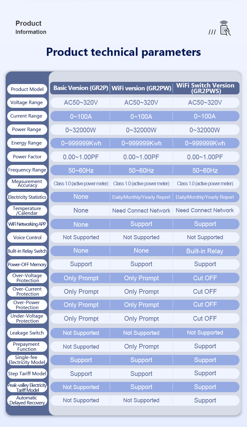 Basic version (GR2P): only prompts an alarm and does not cut off the power supply