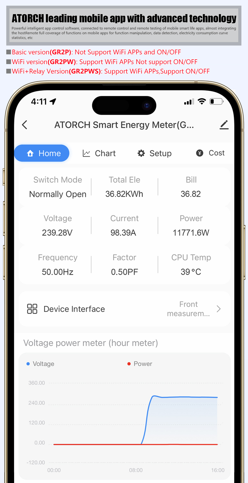 A: Built-in 100A relay, the WIFI version has a relay, and the Bluetooth version does not have a relay.