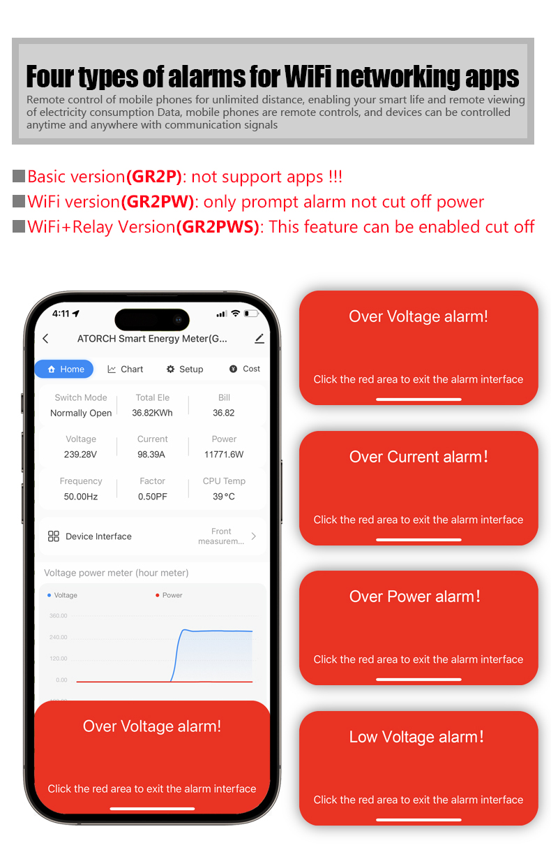 WiFi version (GR2PW): only prompts alarm, no power supply