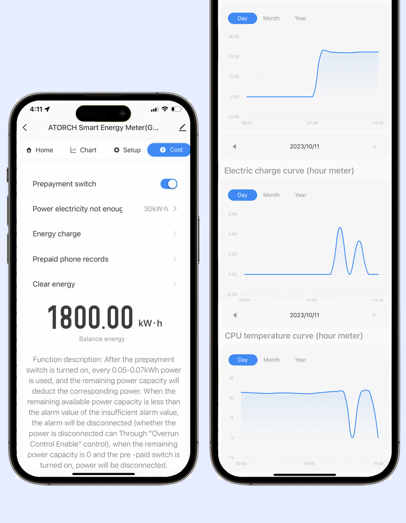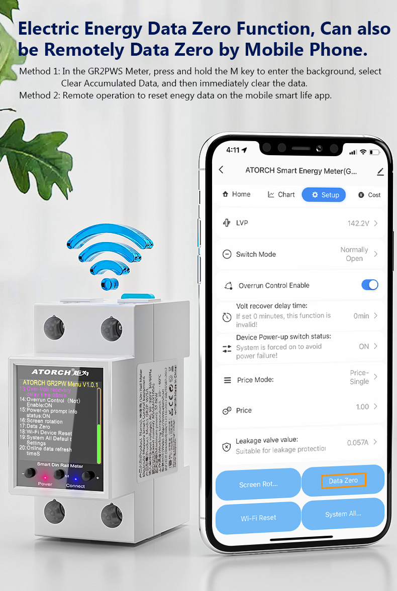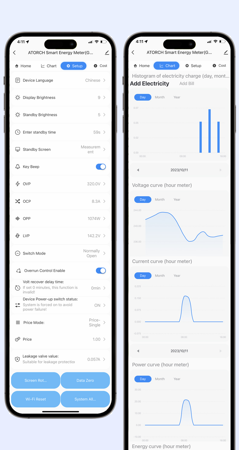 This watch can freely set the undervoltage and overvoltage recovery time (1-99 minutes). When the voltage is restored, normal power supply will be restored within the time you set!